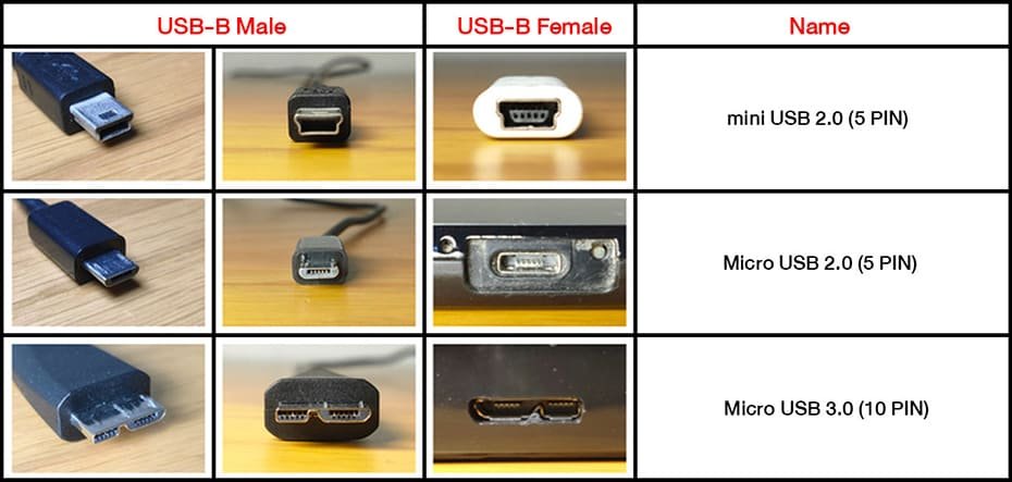 5. Micro-USB: เป็น USB แบบเล็กกว่า Mini-USB และใช้สำหรับอุปกรณ์ที่มีพอร์ต USB แบบ Micro-B เช่น สมาร์ทโฟนและแท็บเล็ต